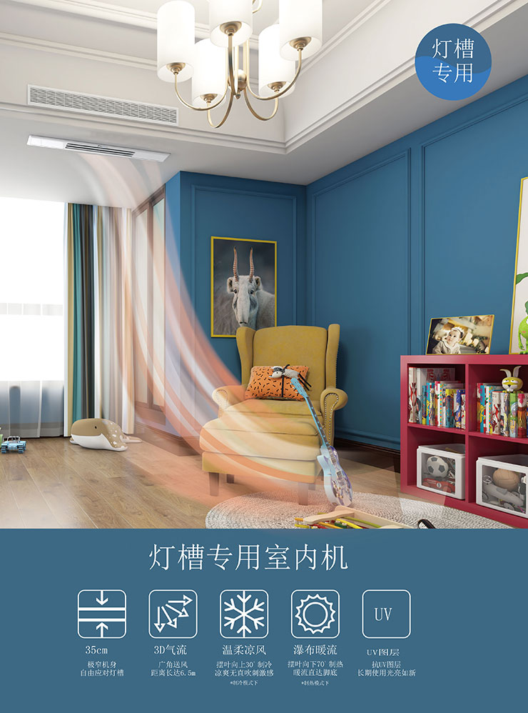 ● 隱藏式檢修口,讓內裝更完整 ● 制冷制熱不同的人性化氣流設計 ● 氣流革新,突破燈槽限制 ">