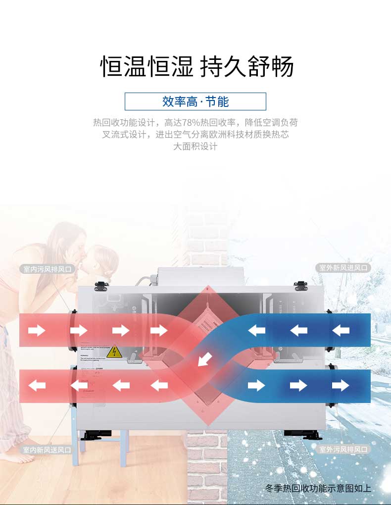 ●恒溫恒濕持久舒暢,高達(dá)78%熱回收率,降低空調(diào)負(fù)荷